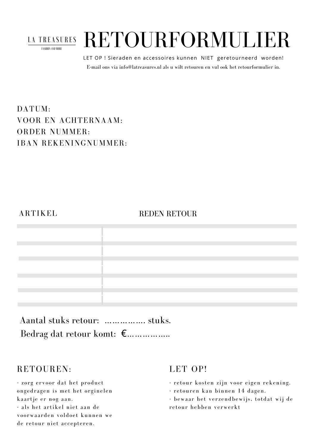 Bedrijf naam: La Treasures