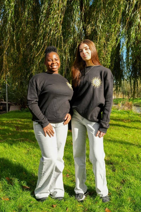 De Fleur trui is een zachte trui met een relaxed, comfortabele fit. De binnenkant voelt heerlijk zacht aan, ideaal om in weg te kruipen. Op de voorkant staat een subtiel ontwerp van een maan en zon in elkaar verwerkt en op de achterkant een grote print van een maan en zon met de tekst Vintage.