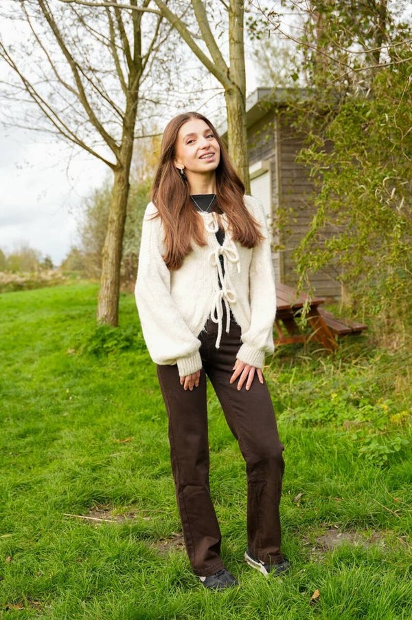 Het Elin vest is een heerlijk zacht vest met drie stijlvolle strikjes aan de voorkant, die zorgen voor een speelse en vrouwelijke touch. Het vest is perfect voor relaxte dagen en geeft je casual outfit net dat beetje extra.