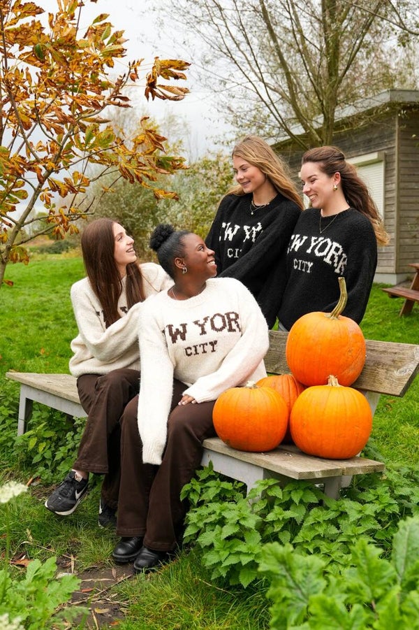 De New York trui is een wolachtige trui met de tekst New York op de voorkant. Heerlijk zacht en comfy, met een relaxed fit die zorgt voor een nonchalante, casual look. Het wolachtige materiaal geeft een cozy vibe en maakt deze trui perfect voor relaxte dagen of een effortless city outfit.