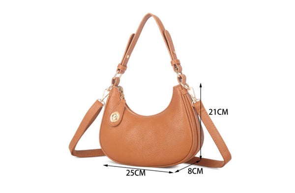 Deze stijlvolle tas is gemaakt van kunstleer en heeft een praktische draaisluiting om de rits te openen. Binnenin vind je 1 vak met ritssluiting, ideaal voor je essentials. De tas wordt geleverd met een afneembare en verstelbare schouderband, zodat je hem zowel crossbody als over de schouder kunt dragen.