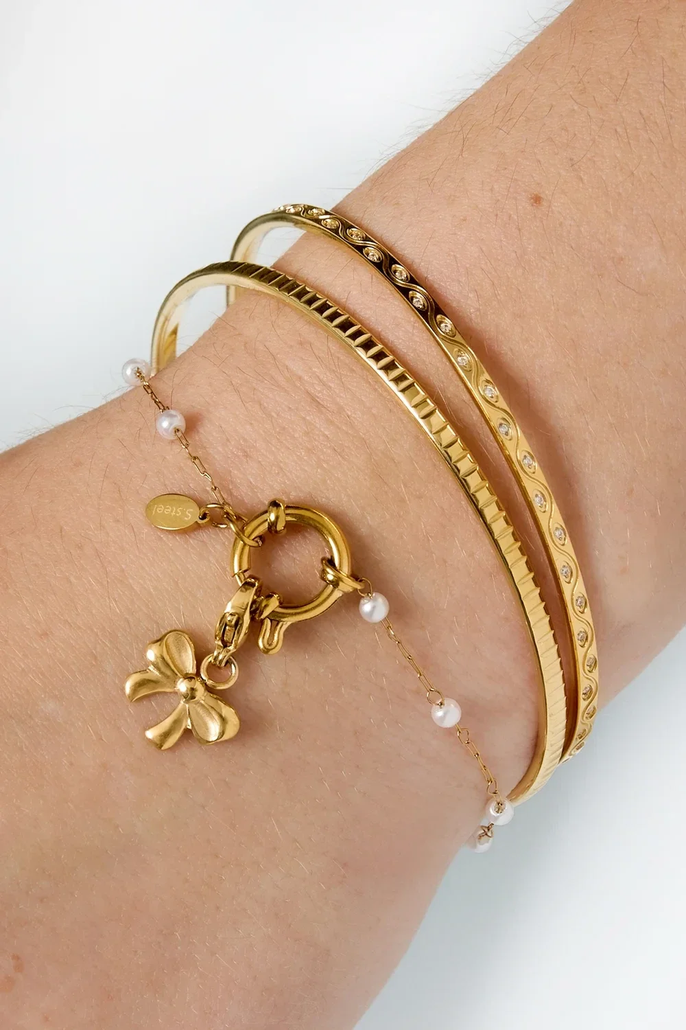 De armband is gemaakt van stainless steel en nikkelvrij, waardoor hij duurzaam en huidvriendelijk is.